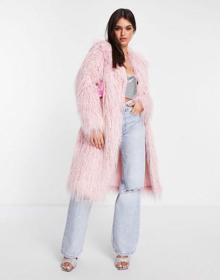 $399.00Faux Longline Coat in Light Pink